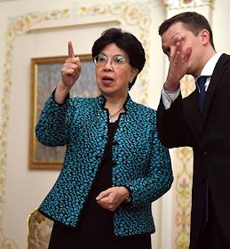 Генеральный директор Всемирной организации здравоохранения (ВОЗ) Маргарет Чен (слева), президент…