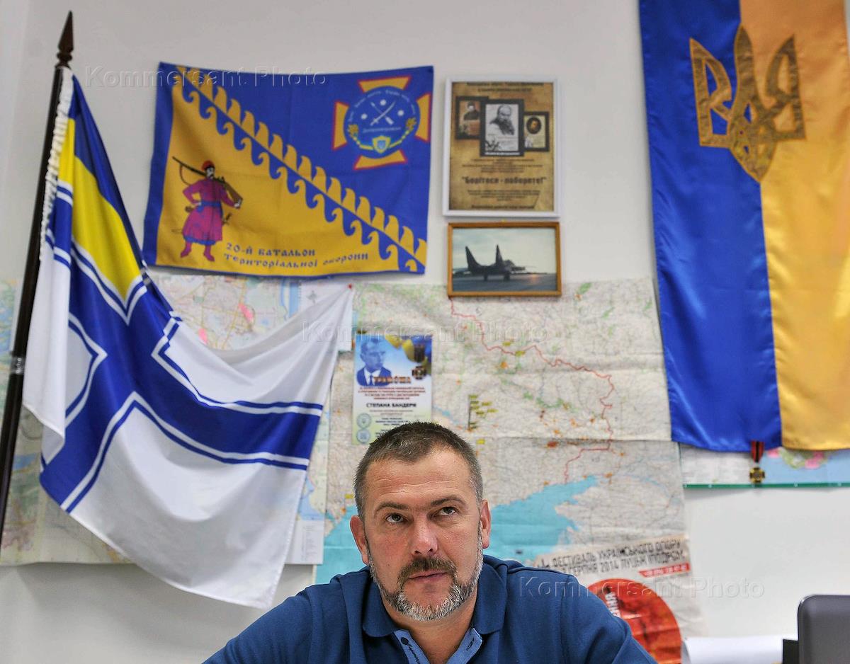 Командир батальона особого назначения "Днепр 1" Юрий Береза во время интервью.
