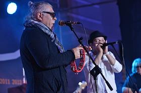 Музыкант, участник второго сезона проекта "Голос" на Первом канале Андрей Давидян (слева) во время…