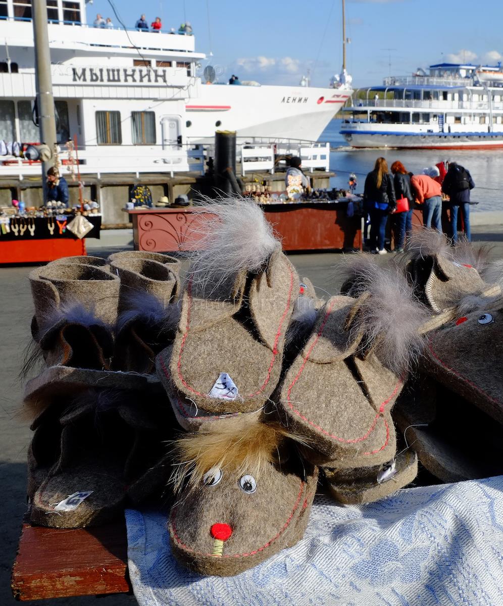 Виды города Мышкина на реке Волге. Торговля сувенирами на пристани.