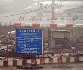 Туман во Внуково-2. Самолеты на взлетной полосе.