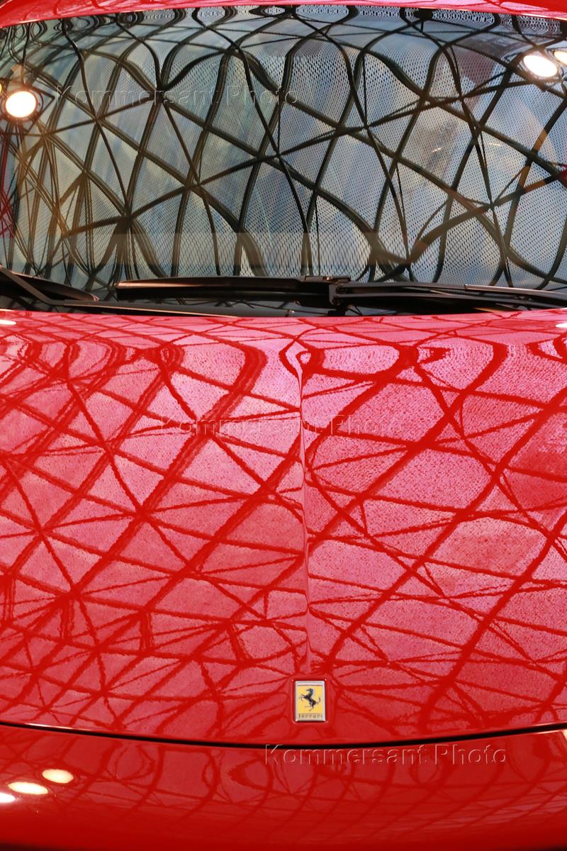 Парк развлечений Ferrari World. Капот автомобиля Ferrari.