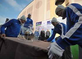 Церемония закладки памятной капсулы в основание исторической стены стадиона "Динамо" на месте…