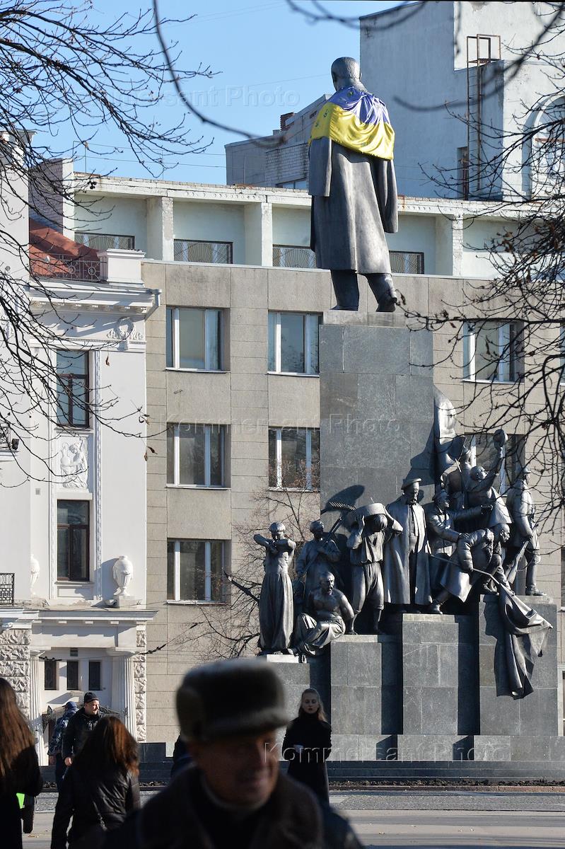 Виды Харькова. Защитный куб на месте, снесенного памятника вождю революции Владимиру Ленину.