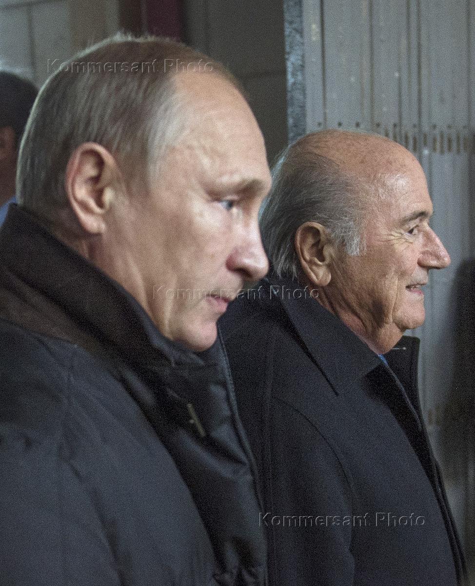 Президент России Владимир Путин (слева) и президент Международной федерации футбола (ФИФА) Йозеф…