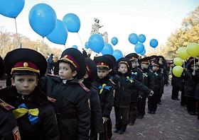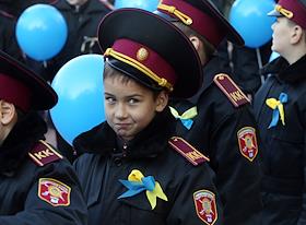 Юные кадеты во время вахты памяти "Спасибо за жизнь" по случаю 70-летия освобождения Украины. Митинг…