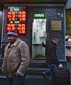 Жанровая фотография. Указатель пункта обмена валют на ограждении.