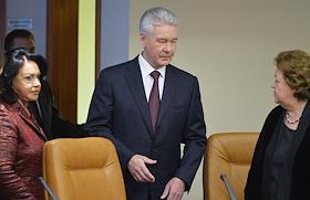 Мэр Москвы Сергей Собянин (в центре) и депутаты Московской городской думы Надежда Бабкина (слева) и…