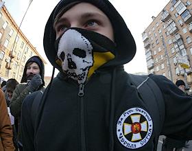 Шествие "Марш за Новороссию" в рамках массовой акции "Русский марш" в московском районе Щукино.