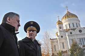 Церемония приведения к присяге судебных приставов УФССП России по Москве и Москвской области, у памятника Александру II на территориии Храма Христа Спасителя.