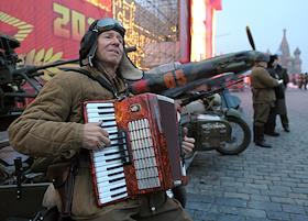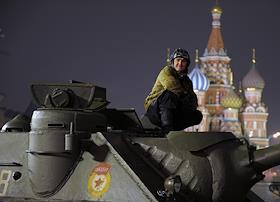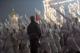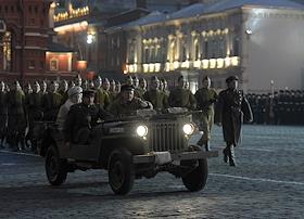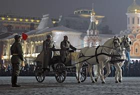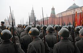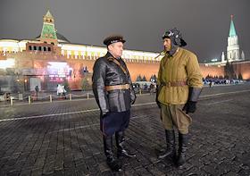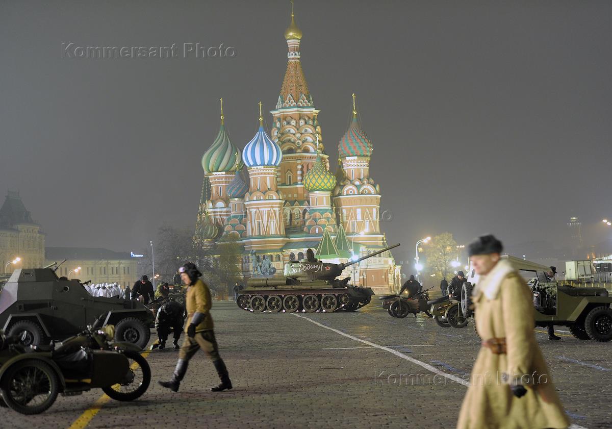 Репетиция торжественного марша, посвященного легендарному параду 7 ноября 1941 года, на Красной площади.
