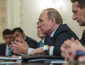 Председатель Государственной думы России Сергей Нарышкин на встрече президента России Владимира…