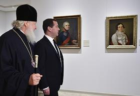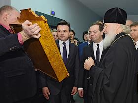 Патриарх Московский и всея Руси Кирилл (слева), председатель правительства России Дмитрий Медведев…
