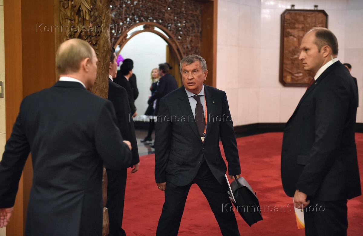 Визит президента России Владимира Путина в Китай. Министр энергетики России Александр Новак (слева)…