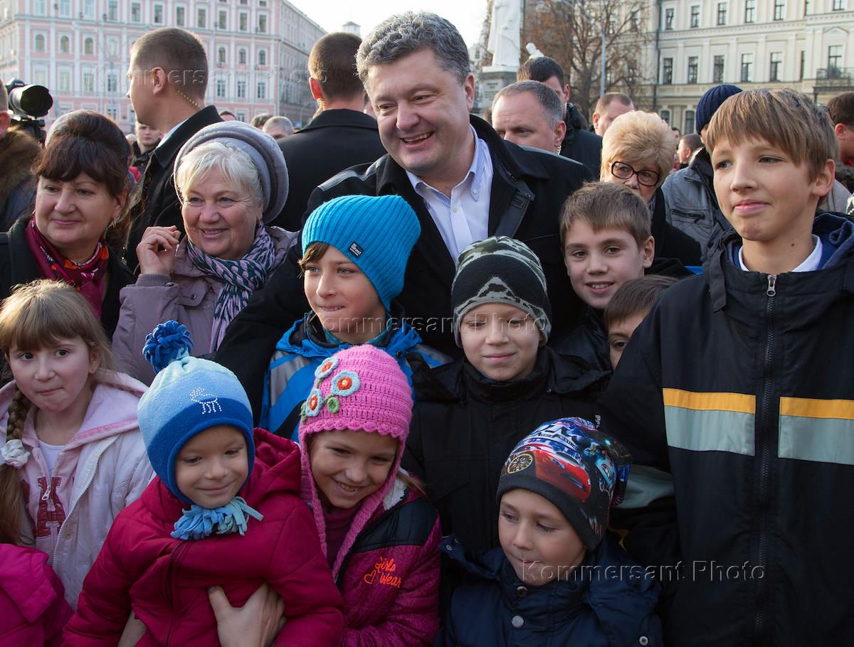 Президент Украины Петр Порошенко (в центре) во время участия в общей Молитве за детей-сирот, в…
