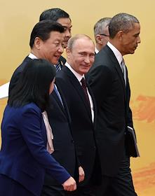 Деловой саммит АТЭС. Слева направо: председатель КНР Си Цзиньпин, президент России Владимир Путин,…