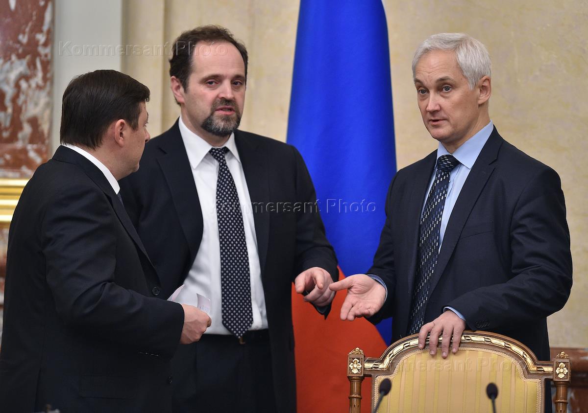 Помощник президента России Андрей Белоусов (cлева) и заместитель председателя правительства России…