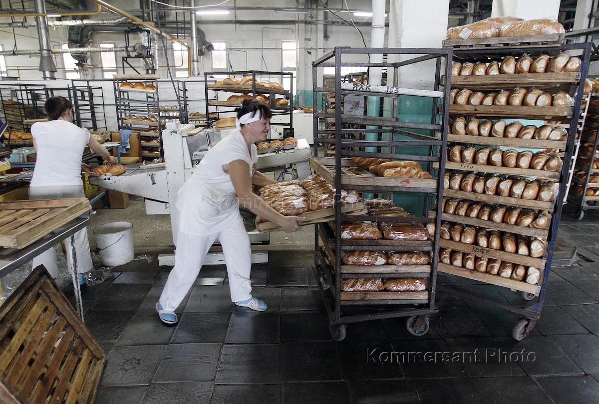 ОАО "Крымхлеб". Феодосийский хлебокомбинат. Работницы во время подготовки хлеба к выпечке.