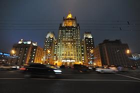 Виды вечерней Москвы. Здание Министерства иностранных дел России на Смоленской площади.