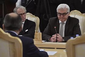 Министр иностранных дел Германии Франк-Вальтер Штайнмайер (справа) во время официальной встречи с…