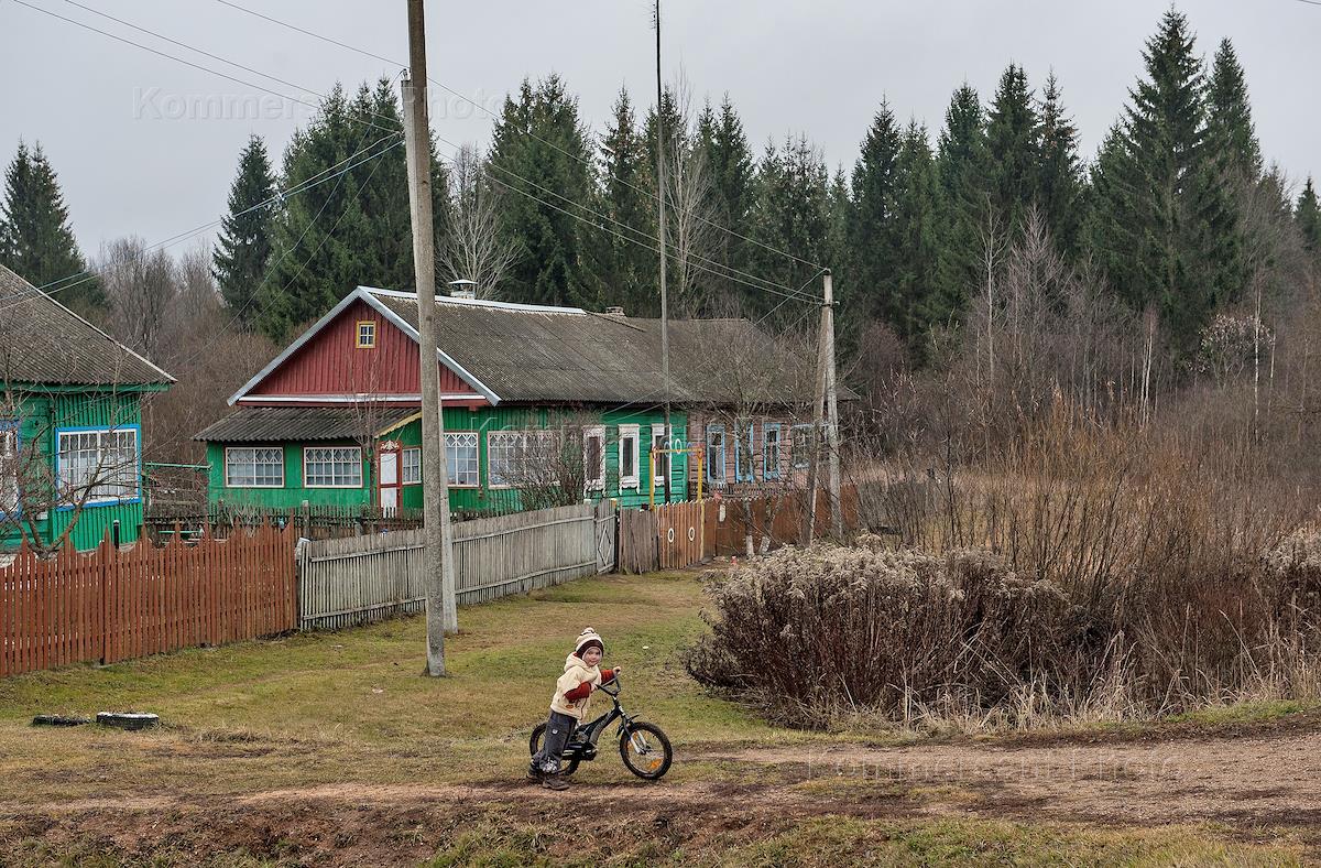Передача земель. Поселок Калуговский. Мальчик едет на велосипеде по дороге.