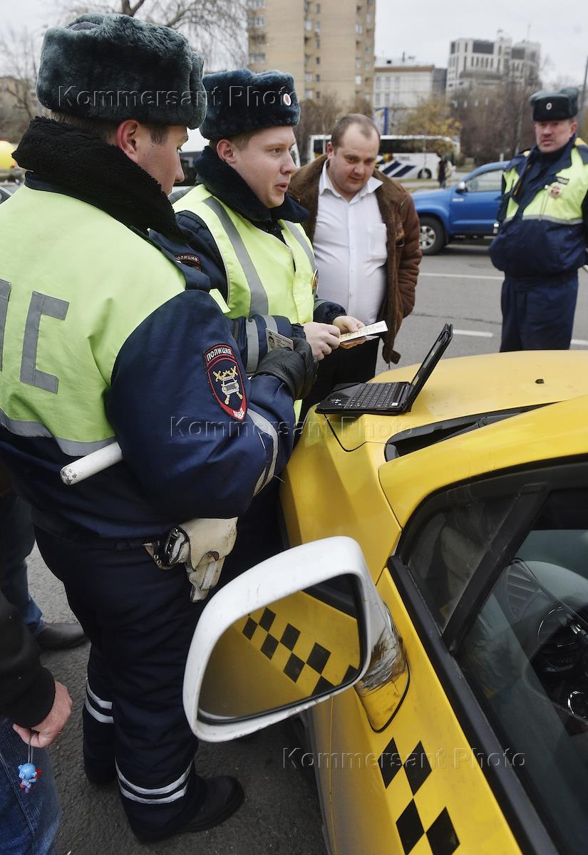 Сотрудники полиции у автомобиля участника проведения авто-флэшмоба "Против ликвидации разделительных…
