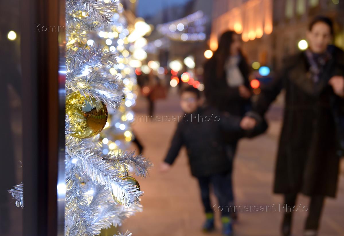 Подготовка к Рождеству в Париже. Новогодние декарации на улице Фобург Сан-Оноре.