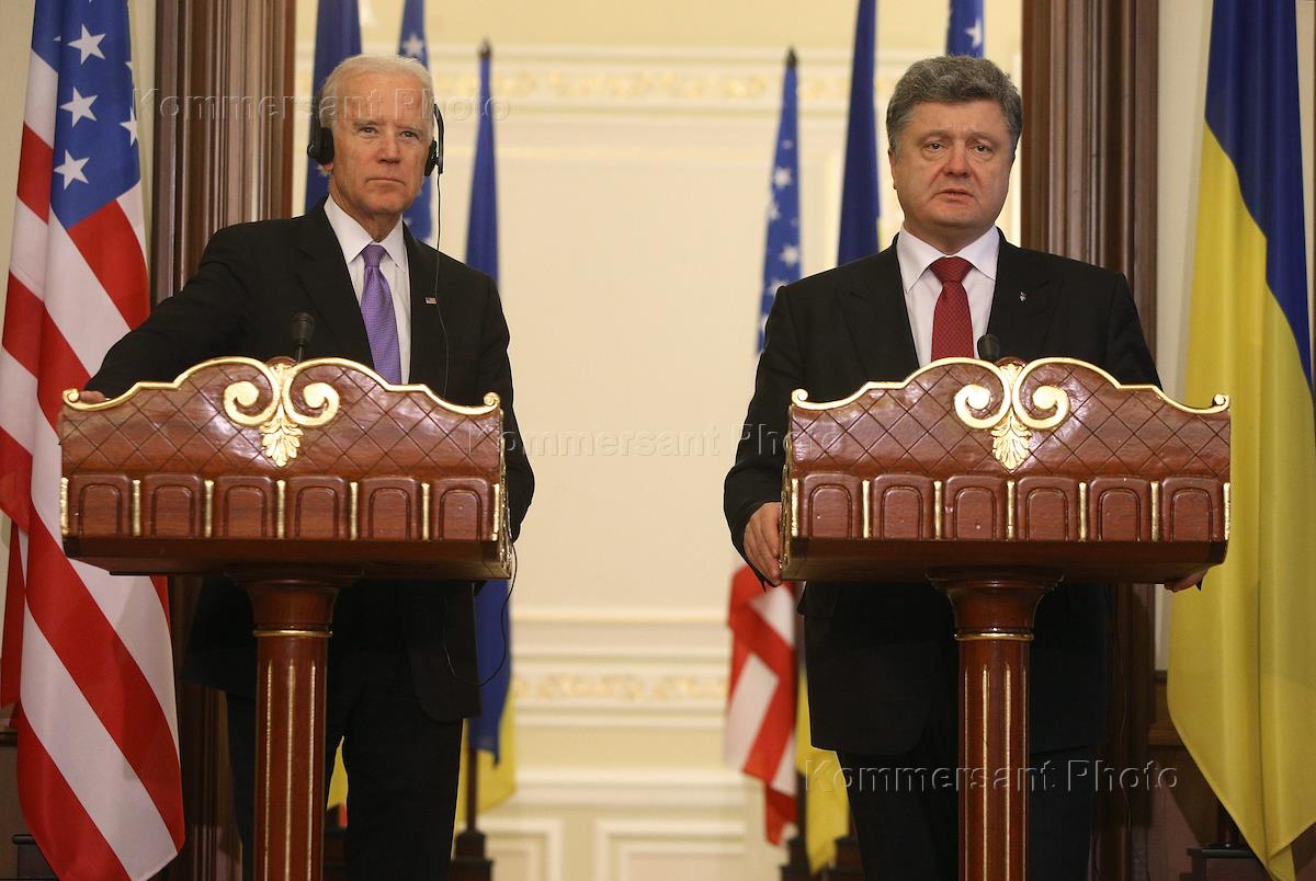 Вице-президент США Джозеф Байден (слева) и президент Украины Петр Порошенко (справа) во время…