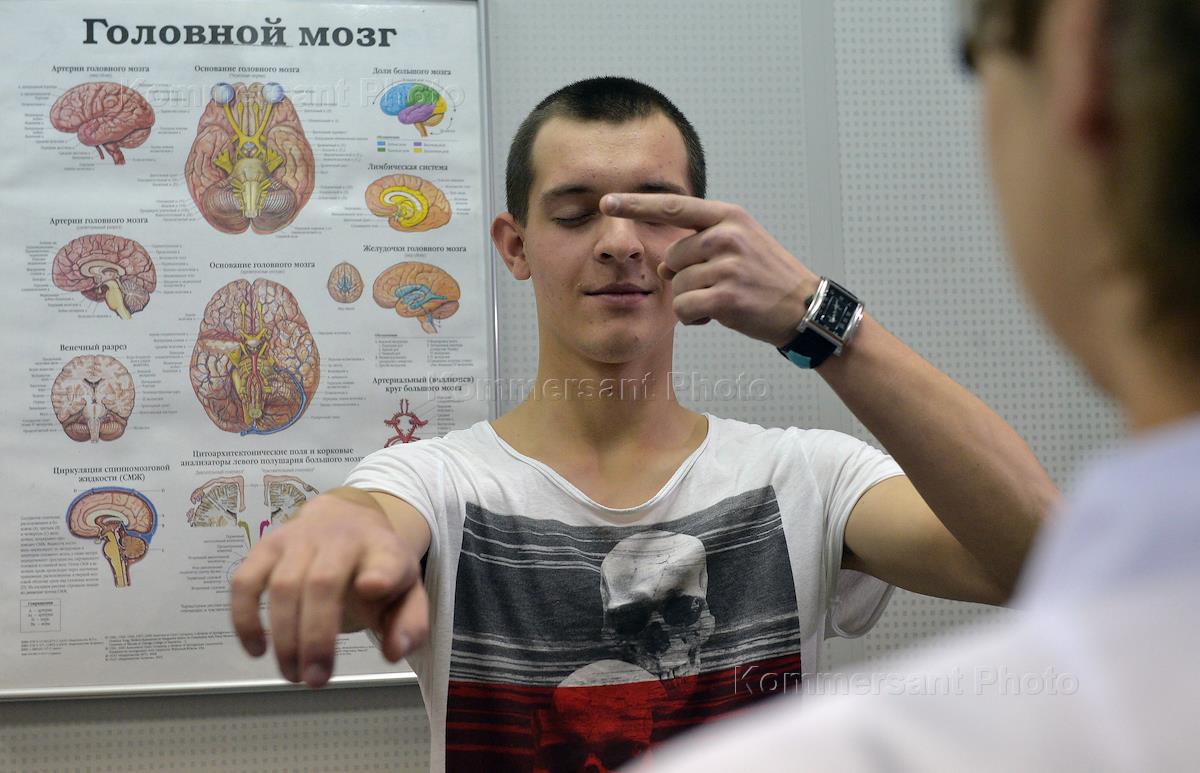 Осенняя призывная кампания в сборном призывном пункте Военного комиссариата города Москвы. Проверка…