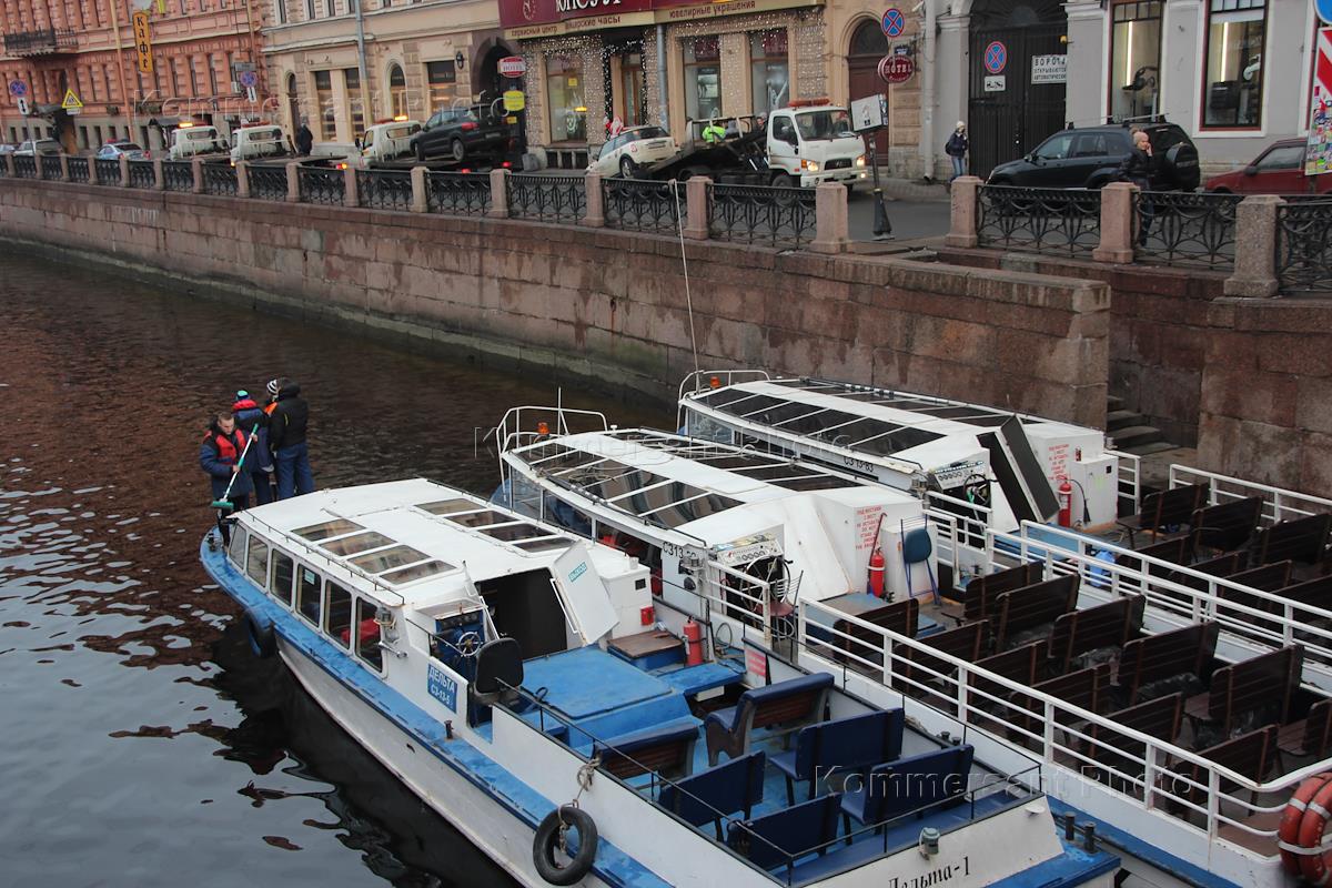 Эвакуация автомобилей, припаркованных под запрещающим знаком на набережной реки Мойки.