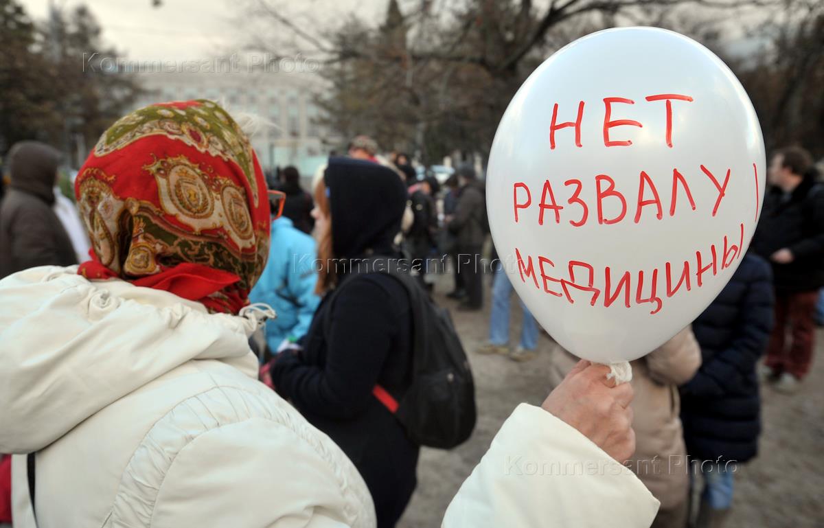 Медицина Митинг против реорганизации здравоохранения, организованный общественным движением "Вместе за достойную медицину!" (-лидер Алла Фролова), на Суворовской площади.