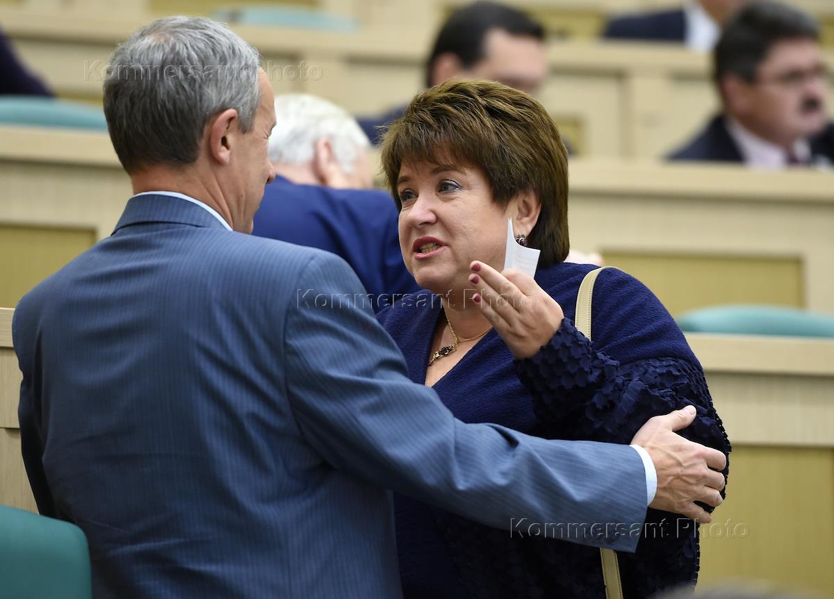 Член комитета Совета Федерации России по международным делам Любовь Глебова (справа) перед пленарным…