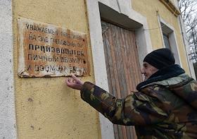 Автомашина на въезде на Глебовскую птицефабрику ордена трудового Красного знамени.