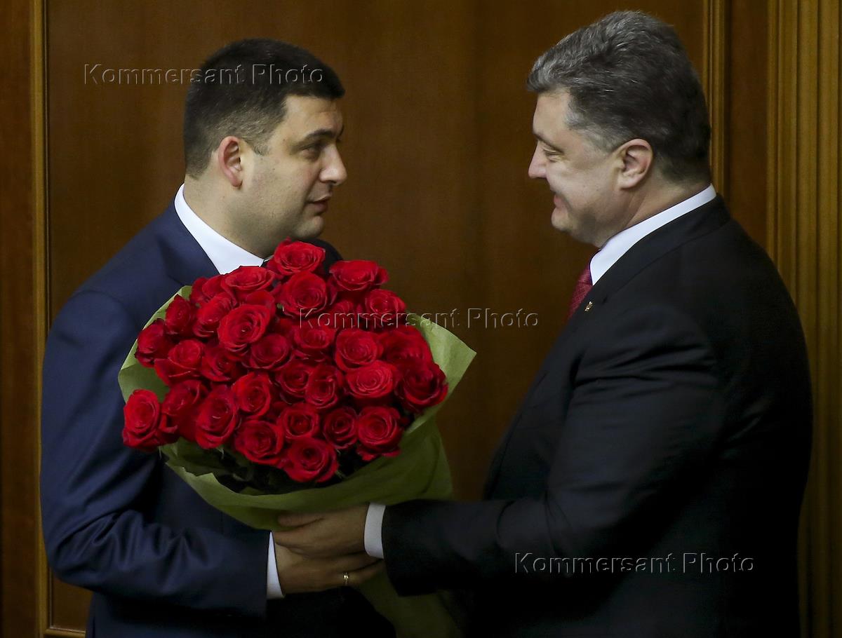 Новый председатель Верховной Рады Украины Владимир Гройсман (слева) и Президент Украины Петр…