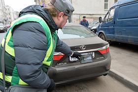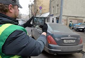 Сотрудник Московского паркинга во время работы на улице 2-я Тверская-Ямская.