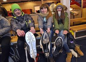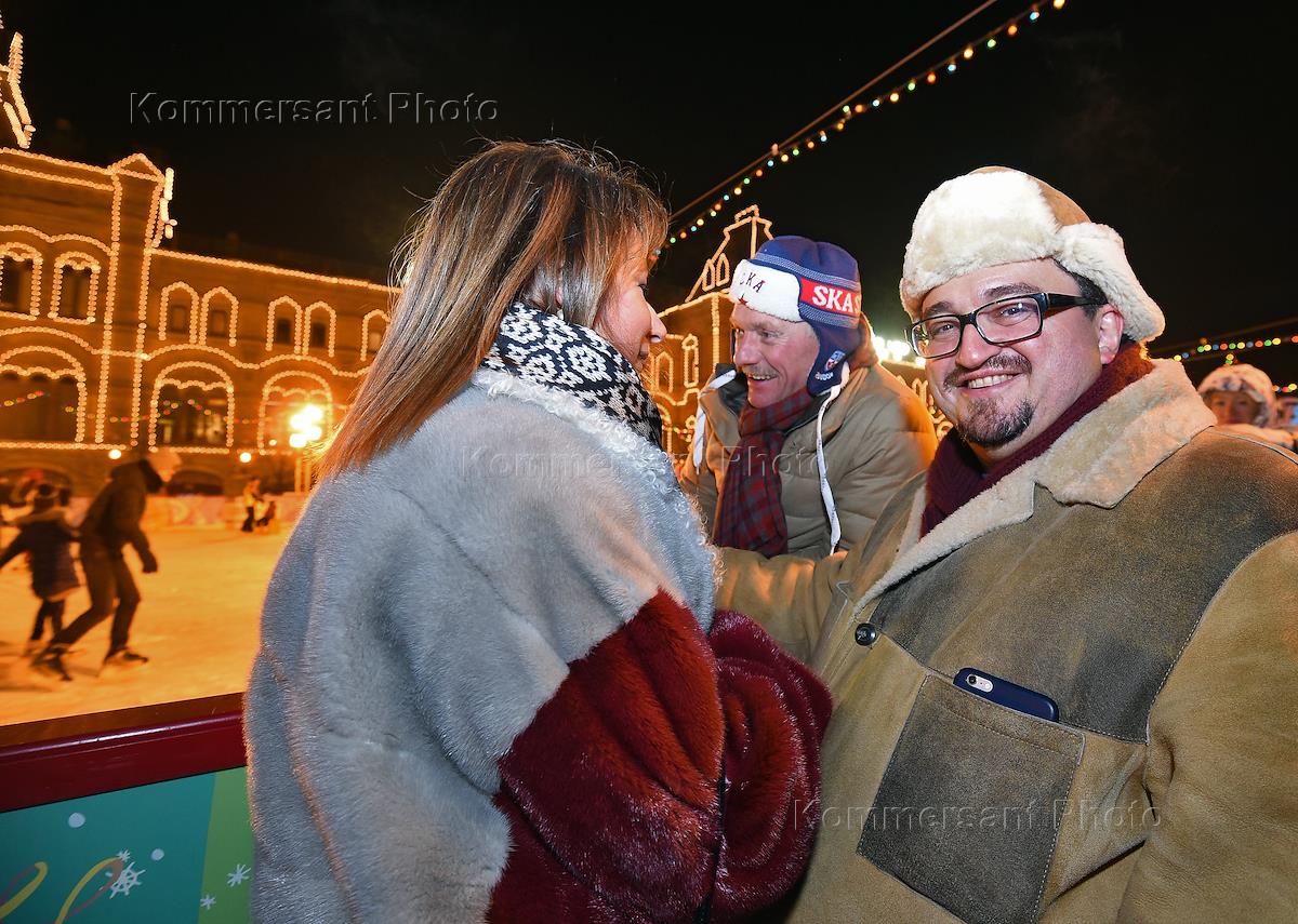 "Гум-Боскопарад". Молодые люди на открытии зимнего катка и ярмарки на Красной площади.
