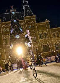 "Гум-Боскопарад". Выступление цирковых артистов на открытии зимнего катка и ярмарки на Красной…