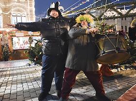 "Гум-Боскопарад". Ростовые куклы на открытии зимнего катка и ярмарки на Красной площади.