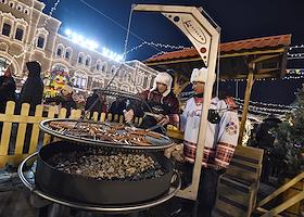 "Гум-Боскопарад". Приготовление колбасок на гриле открытии зимнего катка и ярмарки на Красной…