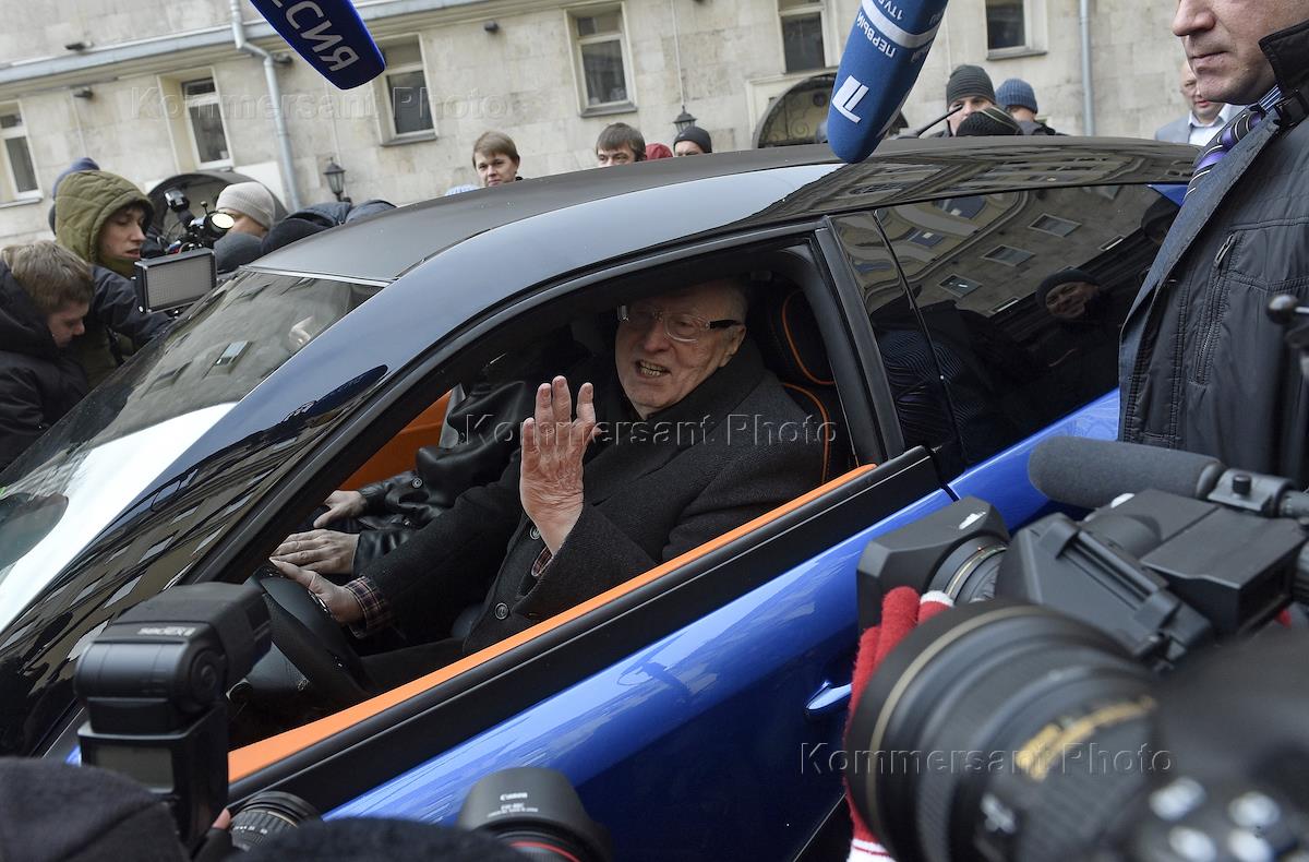 Экономика и бизнес Церемония вручения бизнесменом Михаилом Прохоровым "ё-мобиля" лидеру ЛДПР и вице-спикеру Государственной Думы РФ Владимиру Жириновскому, в офисе компании "Онексим".