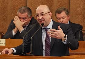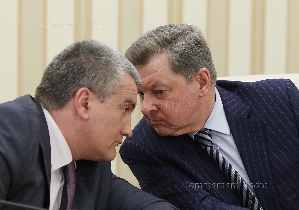 Глава Республики Крым – председатель Совета министров Республики Крым Сергей Аксенов (слева) и…