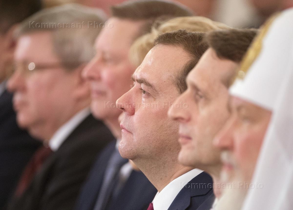 Председатель правительства России Дмитрий Медведев (в центре), председатель Государственной думы…