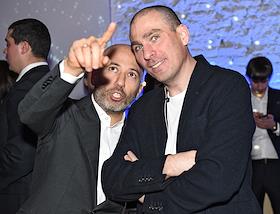 Телеведущий Алекс Дубас (слева) на закрытой презентация нового смартфона "YotaPhone 2" в…