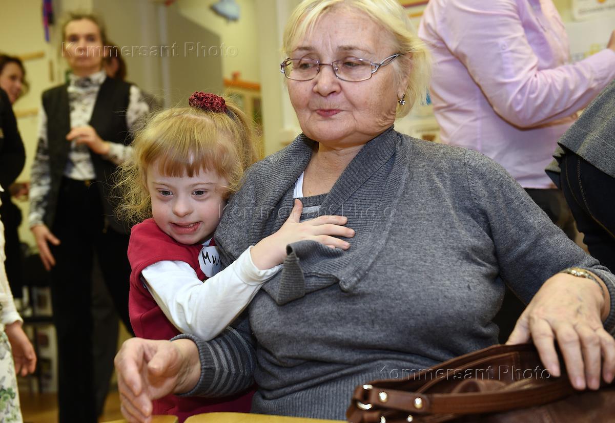 Дети с синдромом Дауна во время создания елочных игрушек вместе с артистами в фонде "Даунсайд ап".