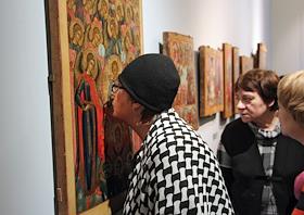 Посетительница на выставке "Древлехранилище памятников иконописи и церковной старины в Русском…