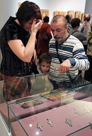 Посетители на выставке "Древлехранилище памятников иконописи и церковной старины в Русском музее",…