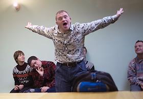 Театр актеров с синдромом Дауна, "Театр Простодушных". Актеры во время репетиции.