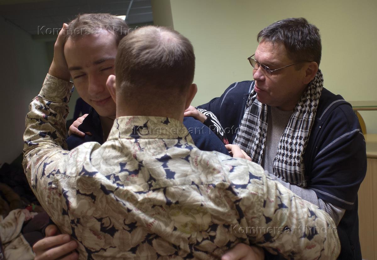 Театр актеров с синдромом Дауна "Театр Простодушных". Режиссер Игорь Неупокоев (справа) во время…