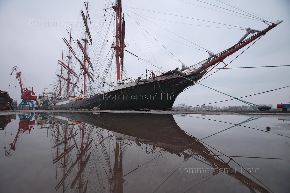 Барк "Седов" на ремонте на судострительном заводе "Восток".