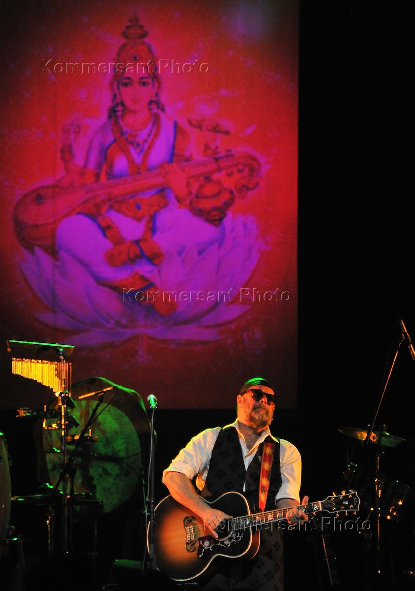 Лидер группы "Аквариум" Борис Гребенщиков во время выступления группы на концерте в концертном зале…
